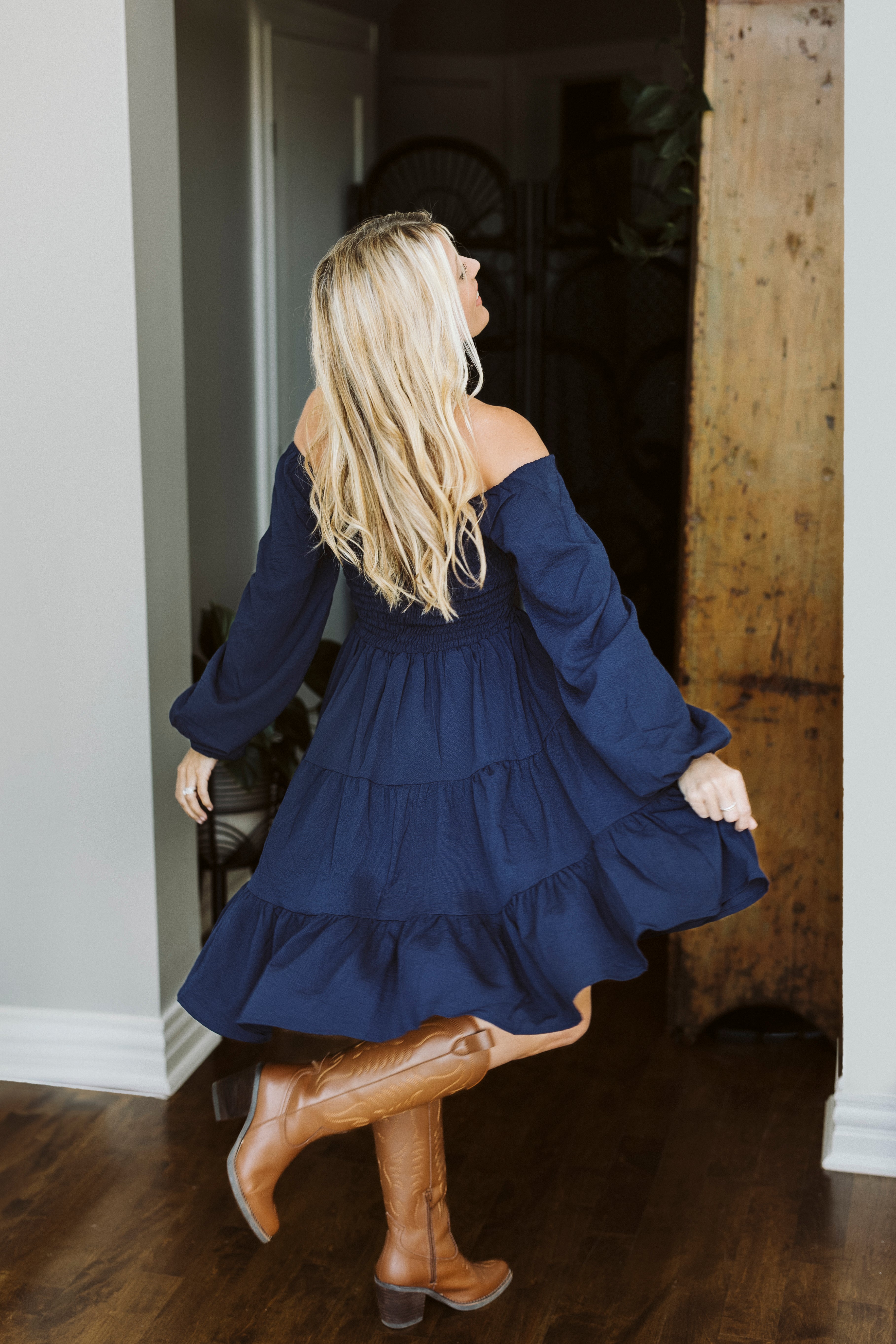 Here's the perfect long-sleeved fall dress for your next event, like a shower, gender reveal, wedding or party!