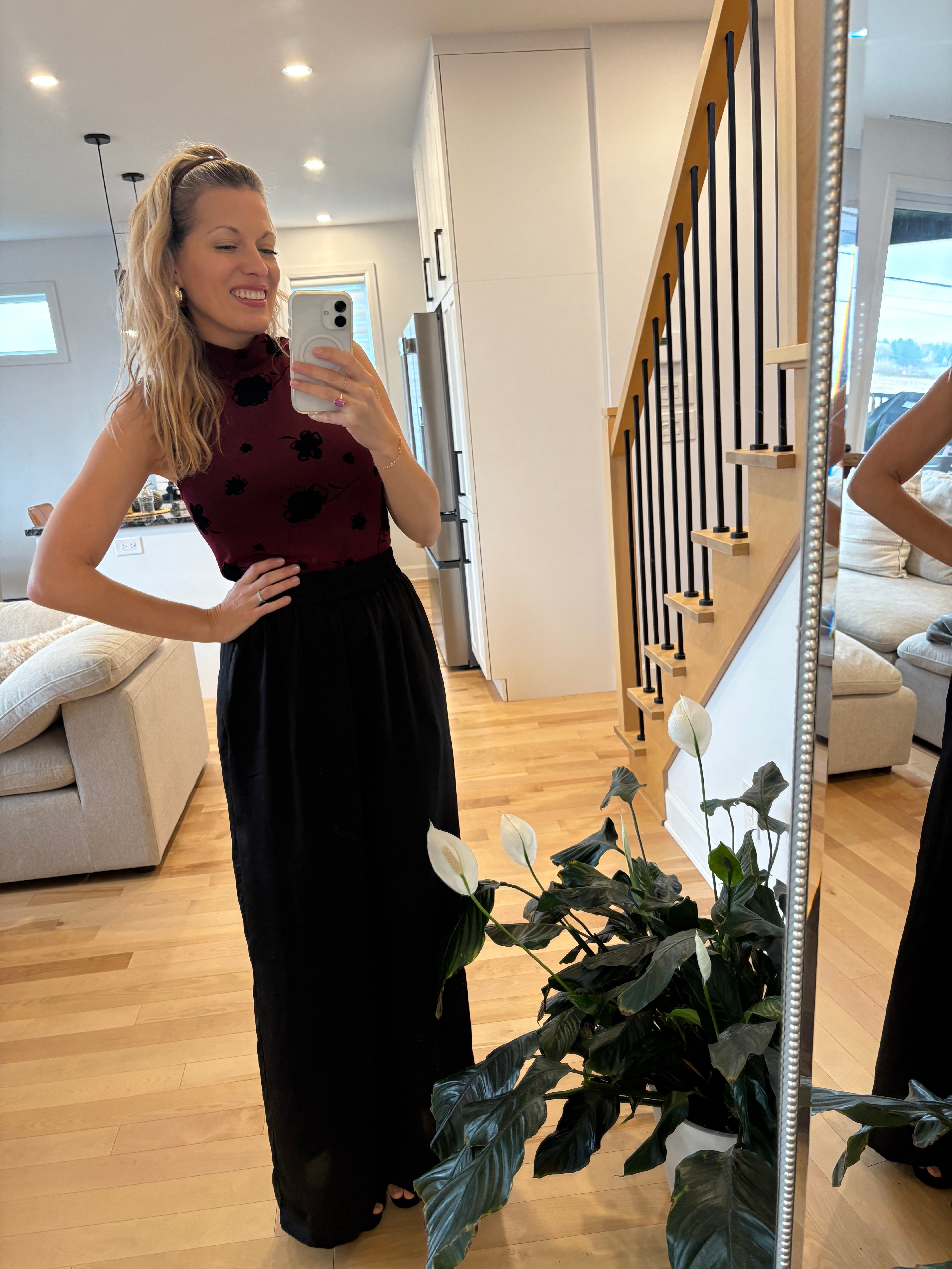 Porté avec la jupe TARA assortie, il crée l’illusion d’une robe longue sophistiquée, tout en permettant une ouverture discrète pour l’allaitement au besoin. Vous pouvez aussi le porter séparément pour un look plus décontracté ou chic selon l’occasion.