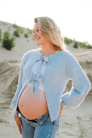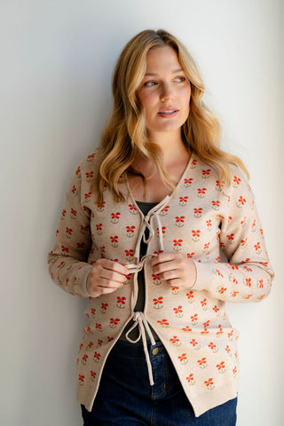 Cardigan CÉCILE (long à rayures) - beige & blanc